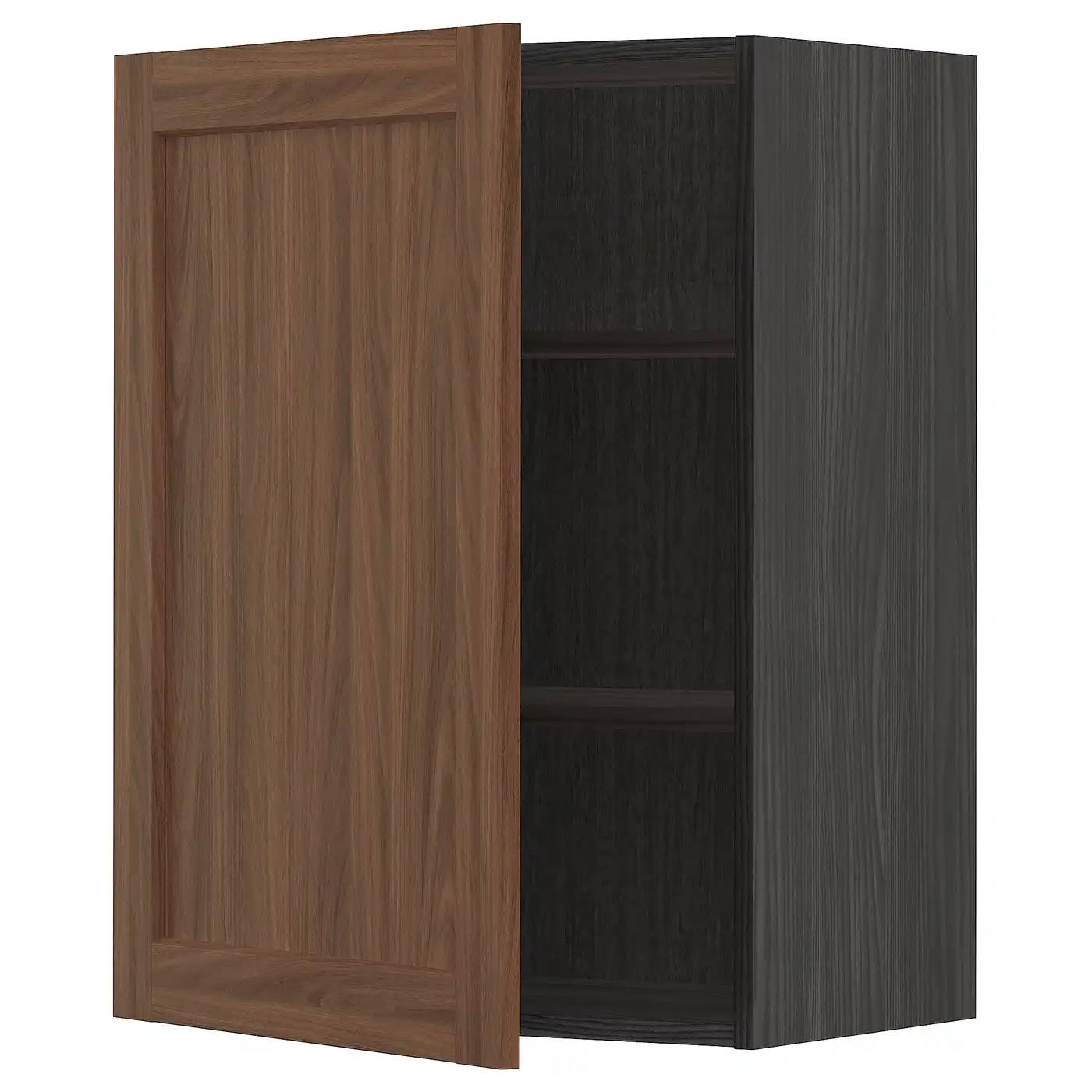 METOD Wall cabinet with shelves - black Enköping/brown walnut effect 60x80 cm