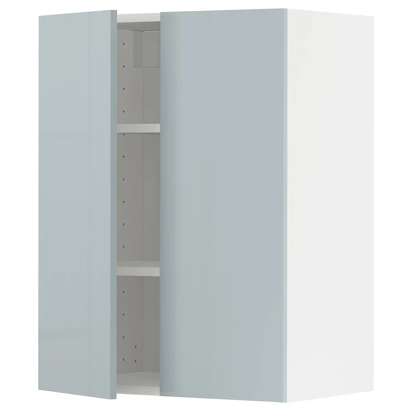 METOD Wall cabinet with shelves/2 doors - white/Kallarp light grey-blue 60x80 cm