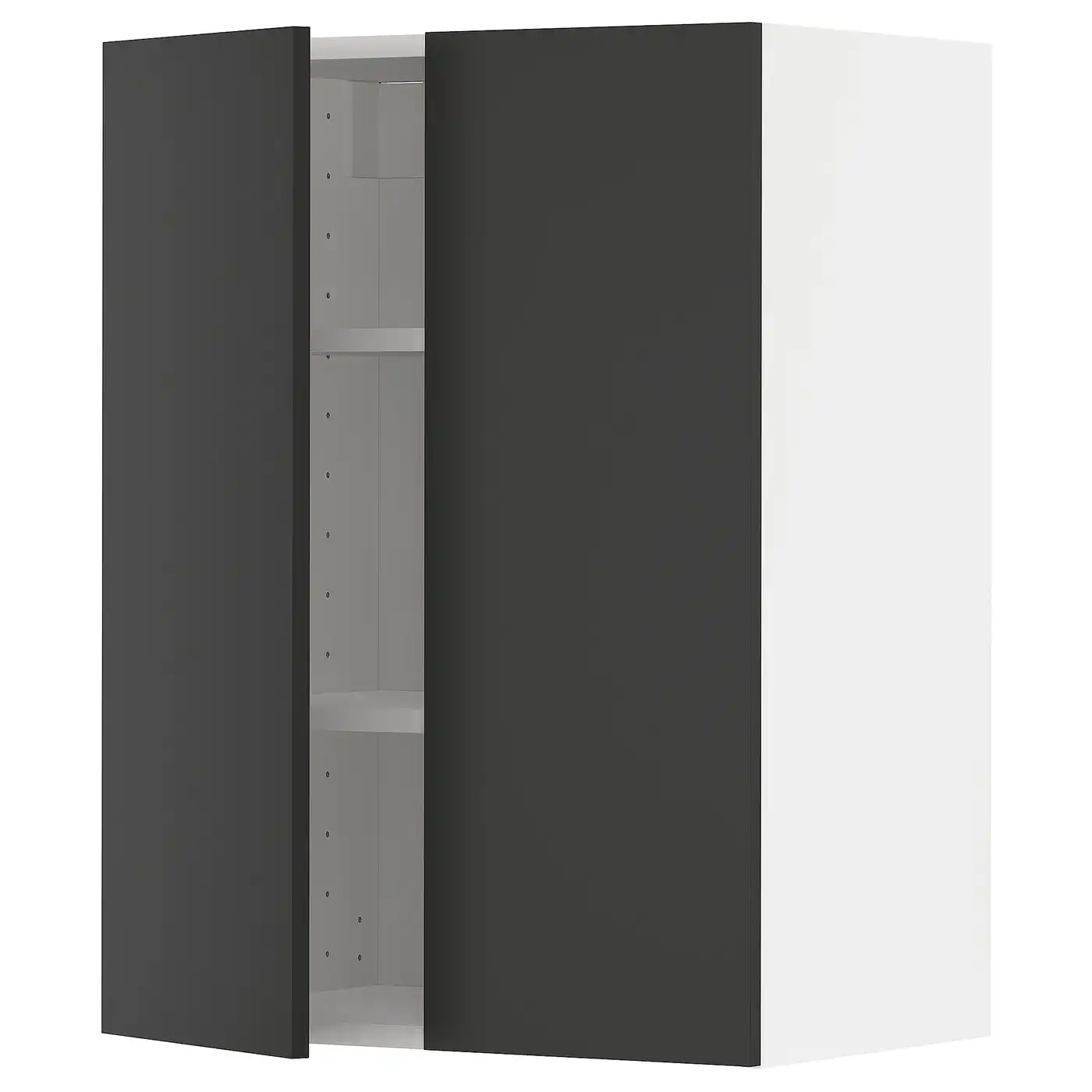 METOD Wall cabinet with shelves/2 doors - white/Nickebo matt anthracite 60x80 cm