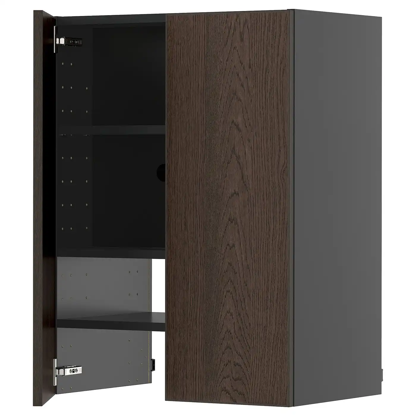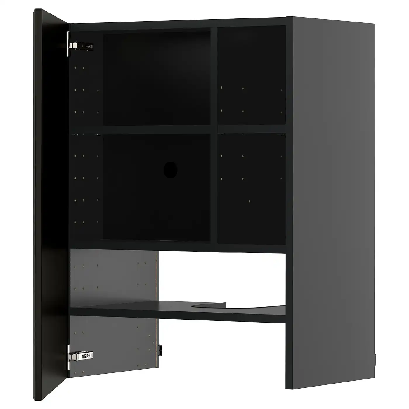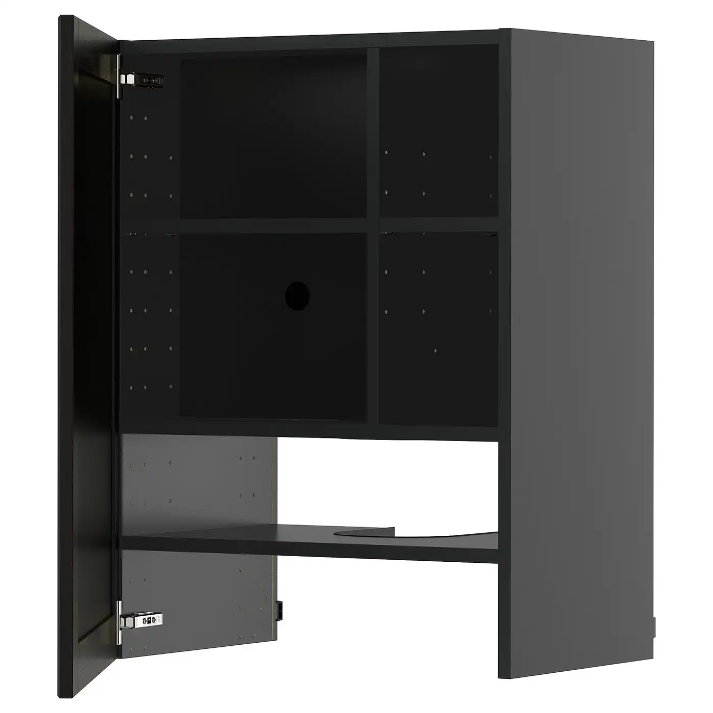 METOD Wall cb f extr hood w shlf/door - black-grey/Nickebo matt anthracite 60x80 cm