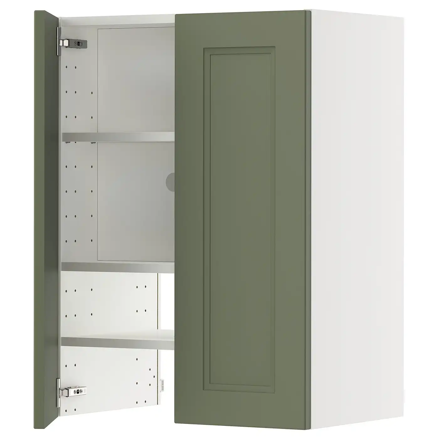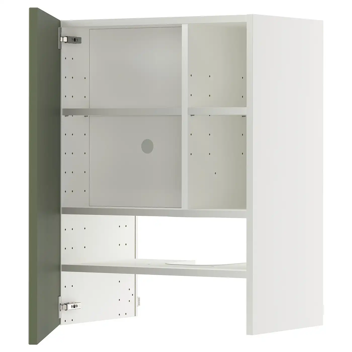 METOD Wall cb f extr hood w shlf/door - white/Axstad grey-green 60x80 cm