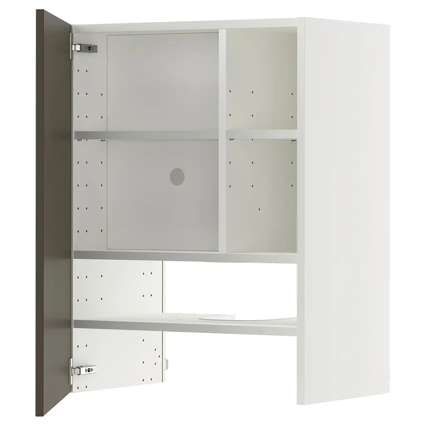 METOD Wall cb f extr hood w shlf/door - white/Upplöv matt dark beige 60x80 cm