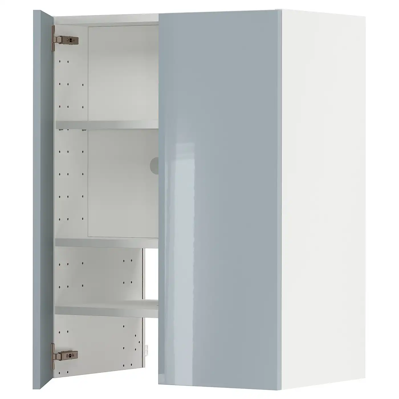 METOD Wall cb f extr hood w shlf/door - white/Kallarp light grey-blue 60x80 cm