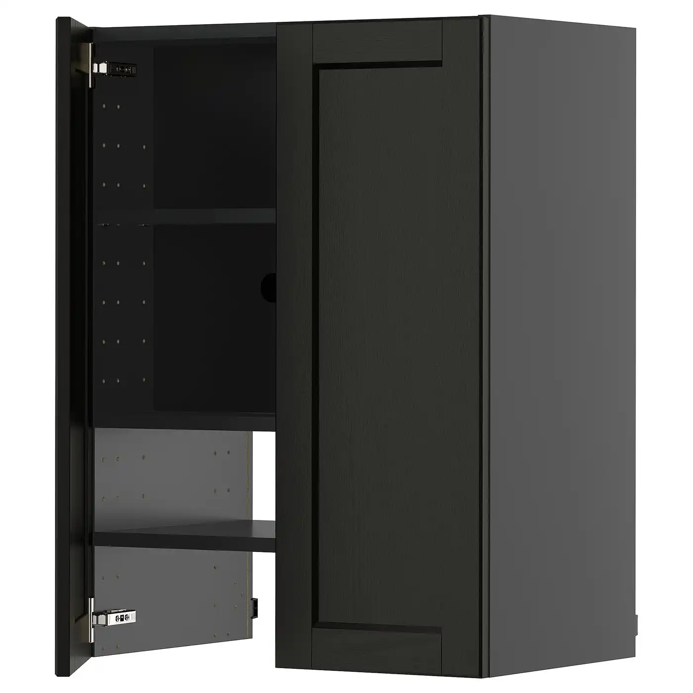METOD Wall cb f extr hood w shlf/door - black-grey/Lerhyttan black stained 60x80 cm