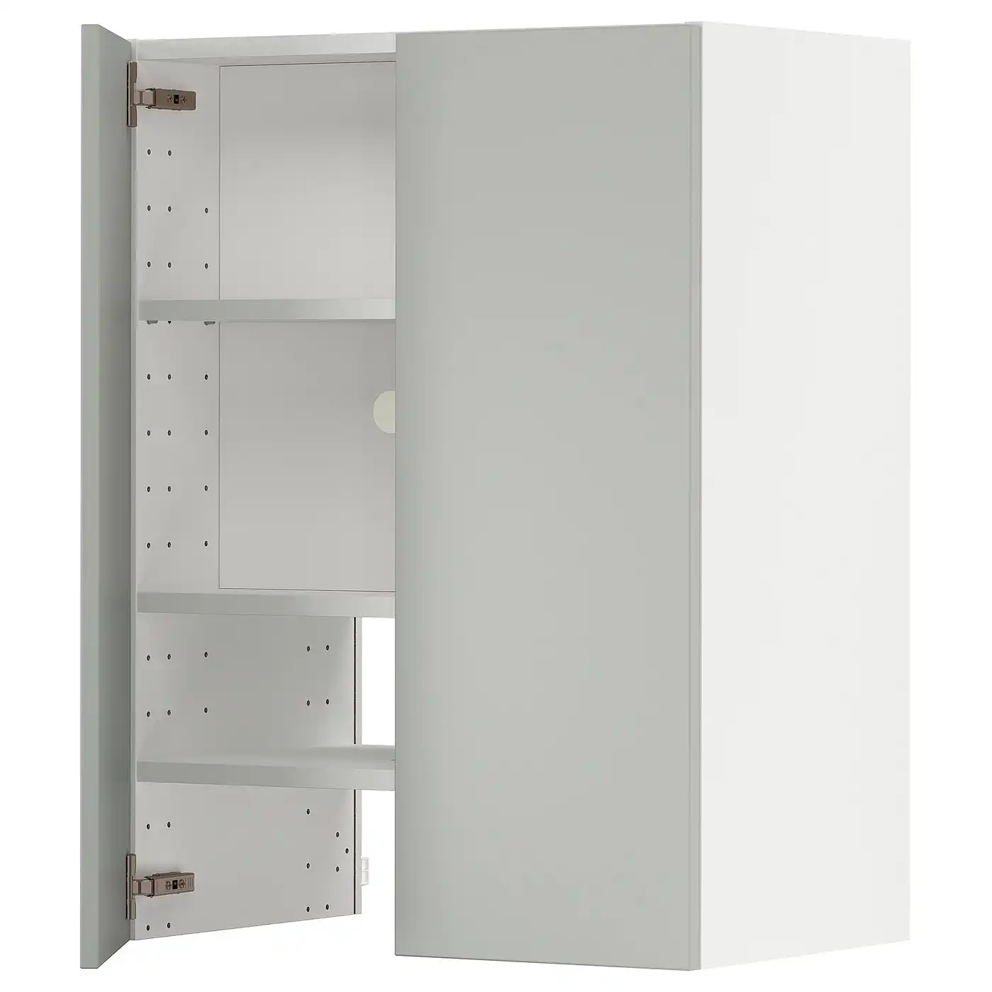 METOD Wall cb f extr hood w shlf/door - white/Ringhult light grey 60x80 cm
