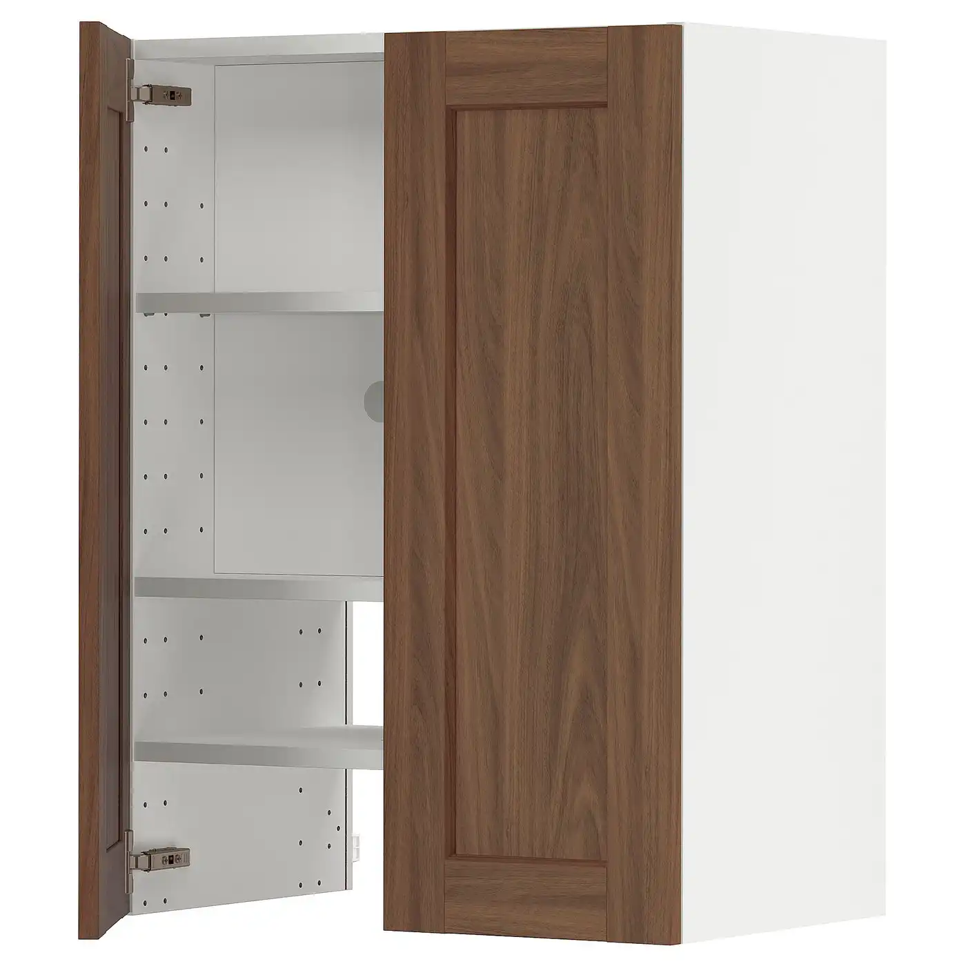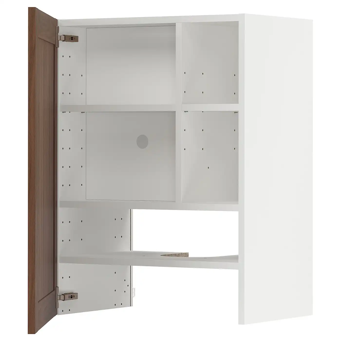 METOD Wall cb f extr hood w shlf/door - white Enköping/brown walnut effect 60x80 cm