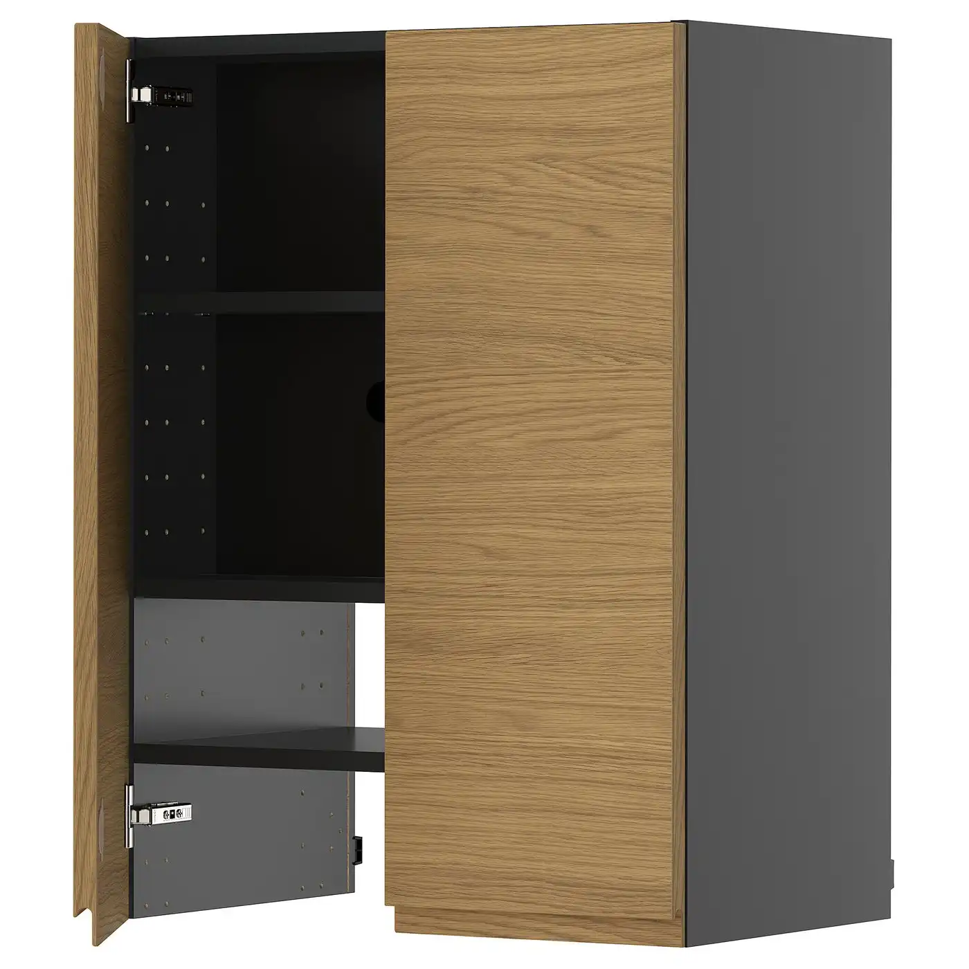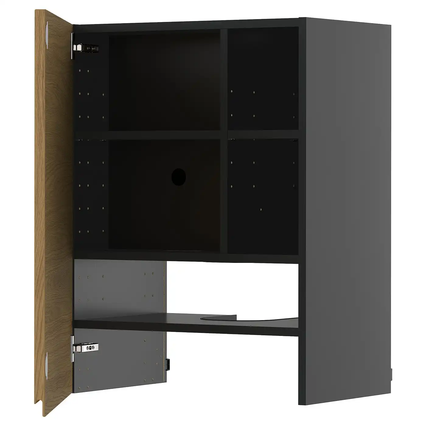 METOD Wall cb f extr hood w shlf/door - black-grey/Voxtorp oak effect 60x80 cm