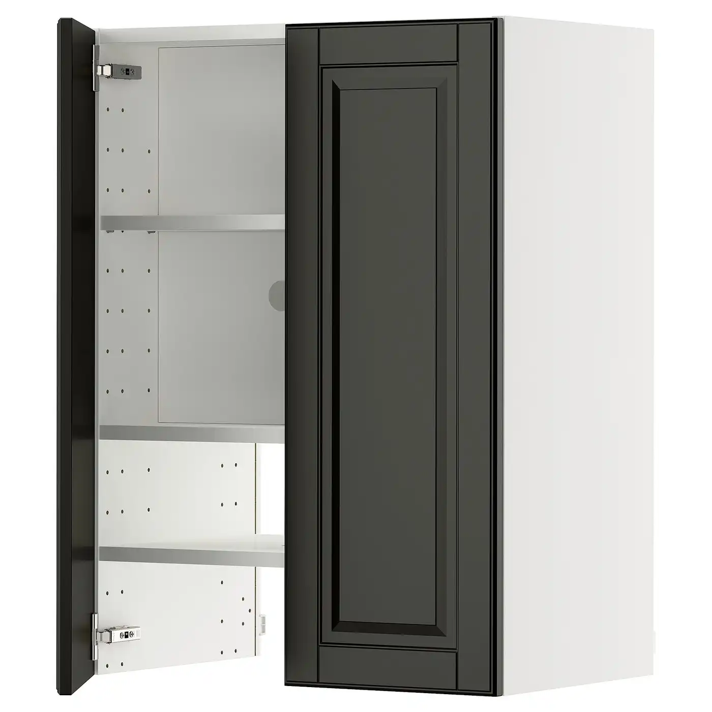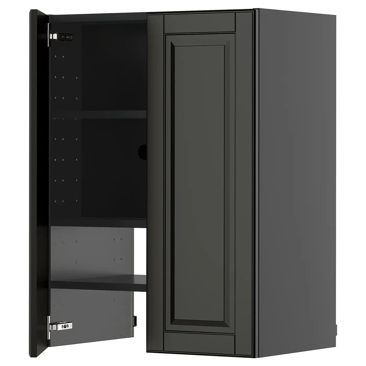 METOD Wall cb f extr hood w shlf/door - black-grey/Bodbyn black 60x80 cm