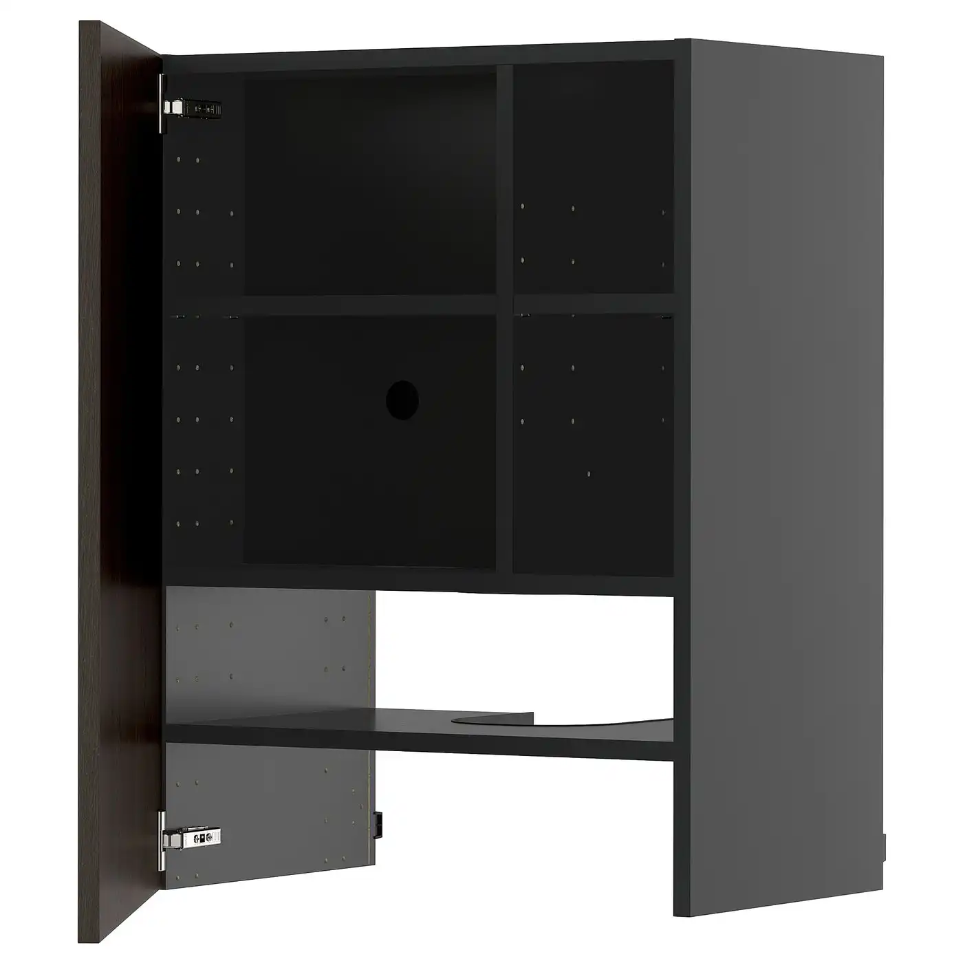 METOD Wall cb f extr hood w shlf/door - black-grey/Sinarp brown 60x80 cm