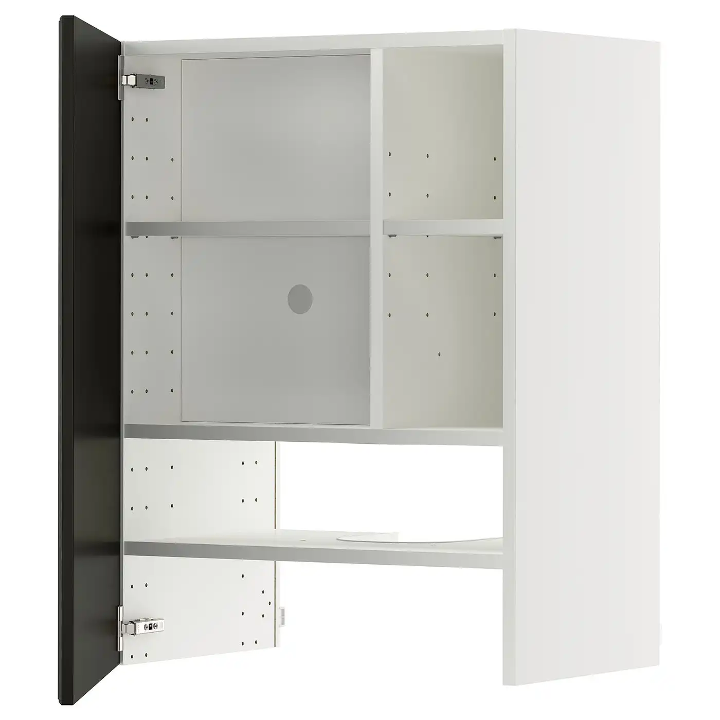 METOD Wall cb f extr hood w shlf/door - white/Bodbyn black 60x80 cm