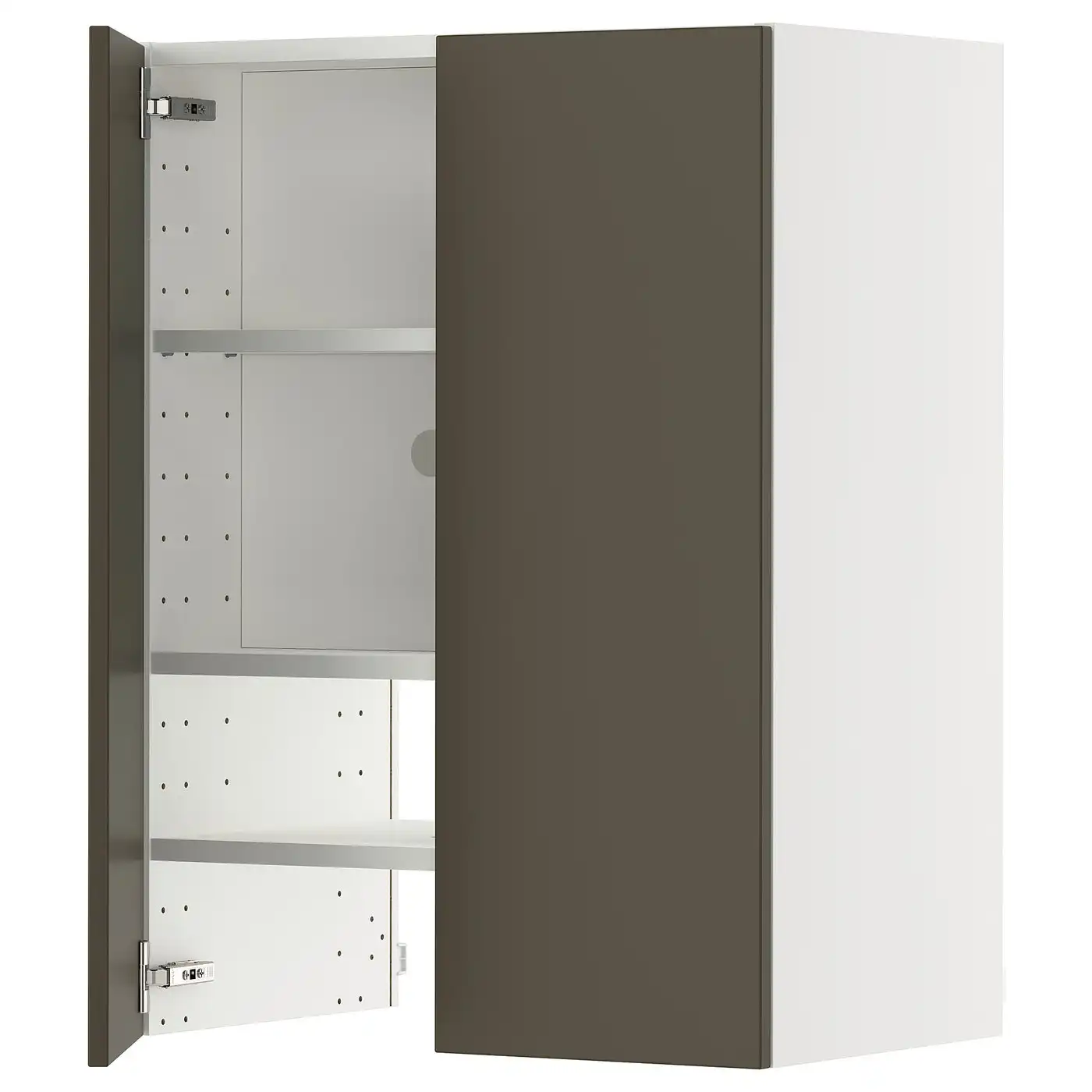 METOD Wall cb f extr hood w shlf/door - white/Sinarp brown 60x80 cm