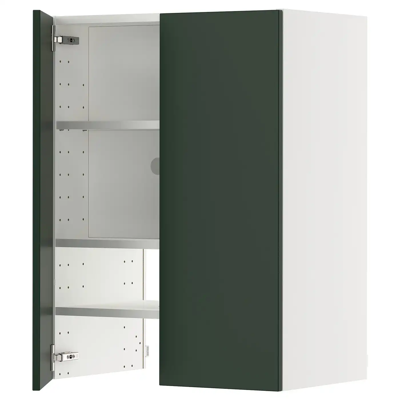 METOD Wall cb f extr hood w shlf/door - white/Havstorp deep green 60x80 cm