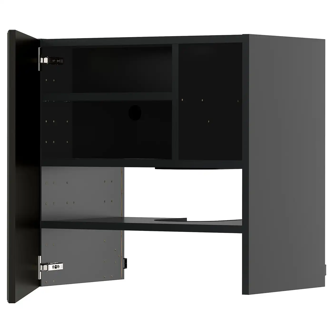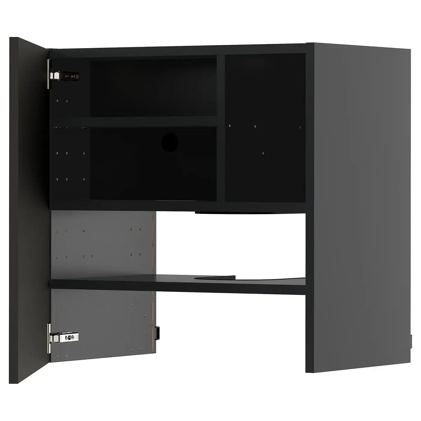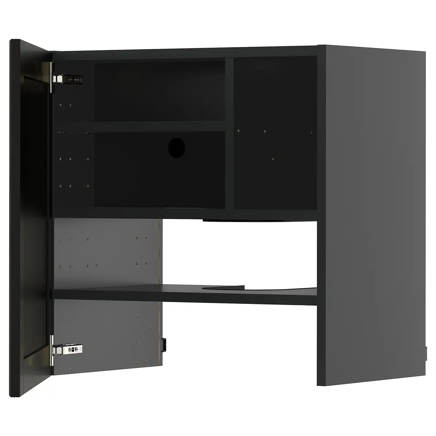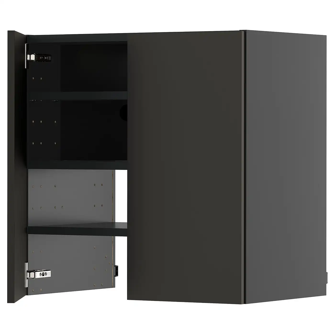 METOD Wall cb f extr hood w shlf/door - black-grey/Nickebo matt anthracite 60x60 cm