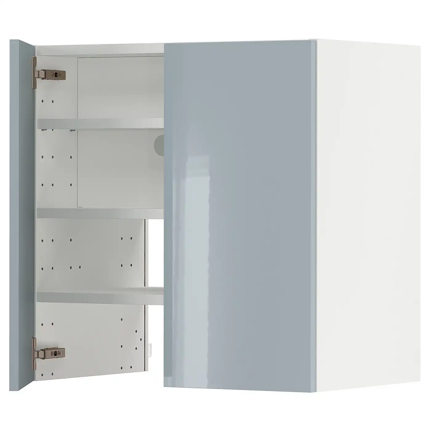 METOD Wall cb f extr hood w shlf/door - white/Kallarp light grey-blue 60x60 cm