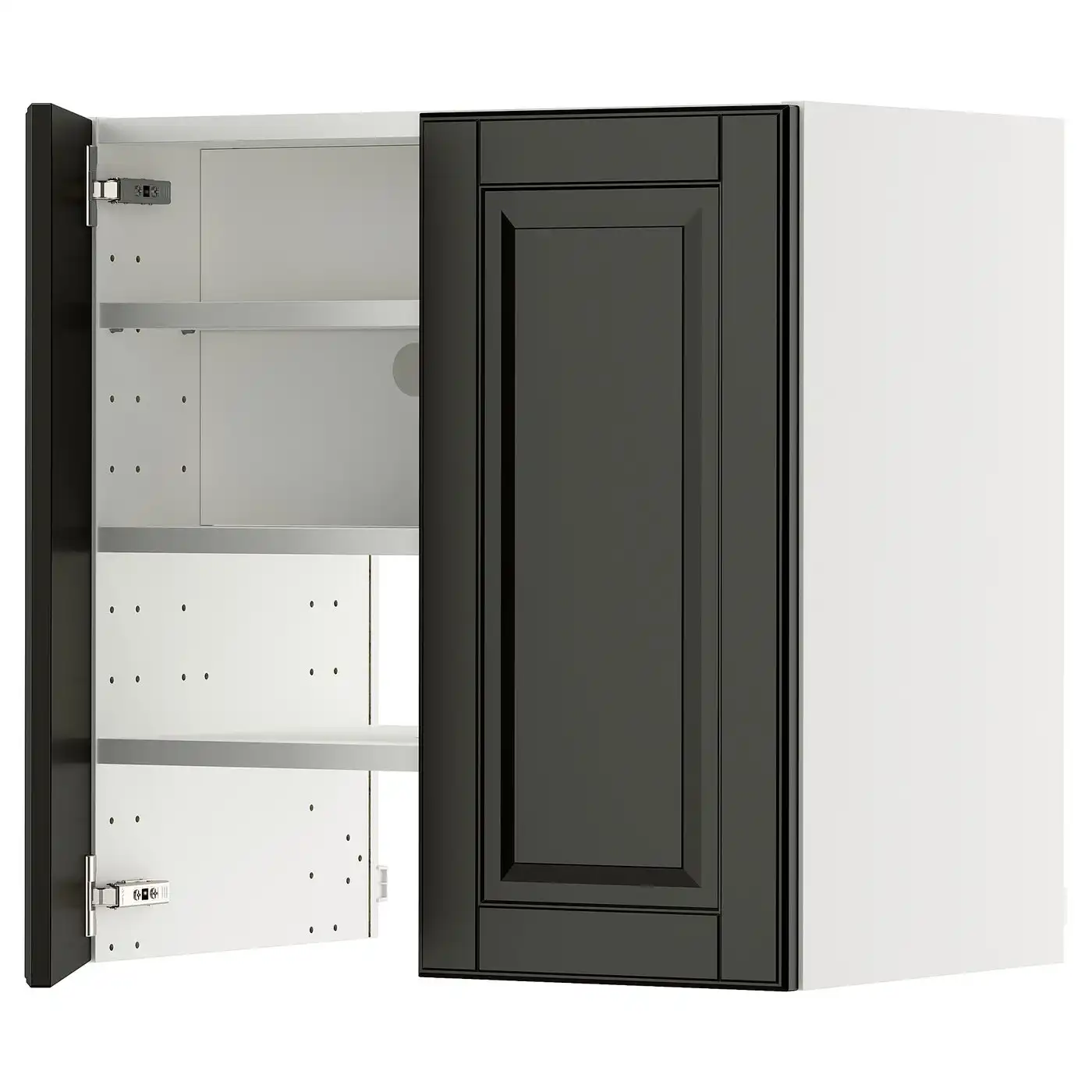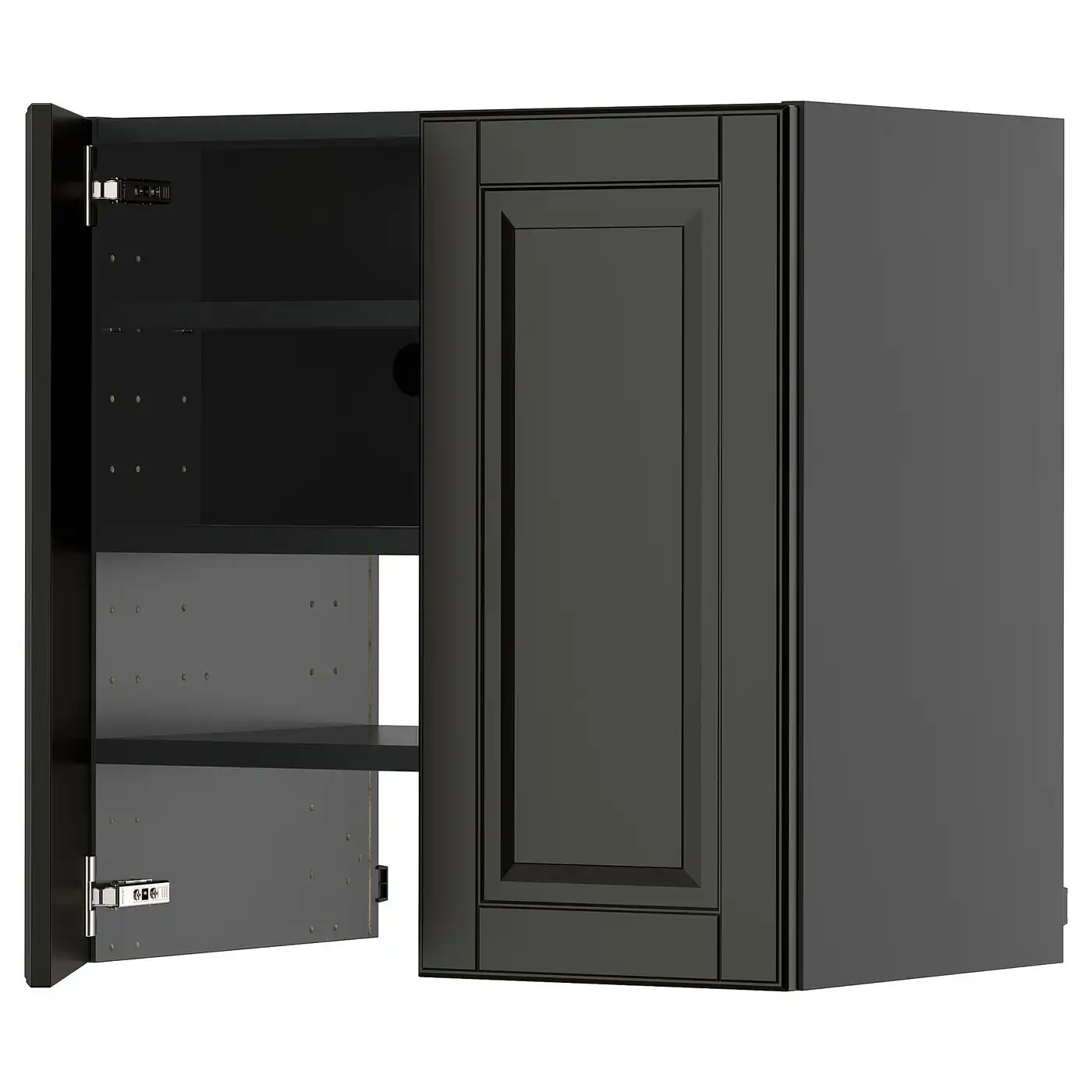 METOD Wall cb f extr hood w shlf/door - black-grey/Bodbyn black 60x60 cm