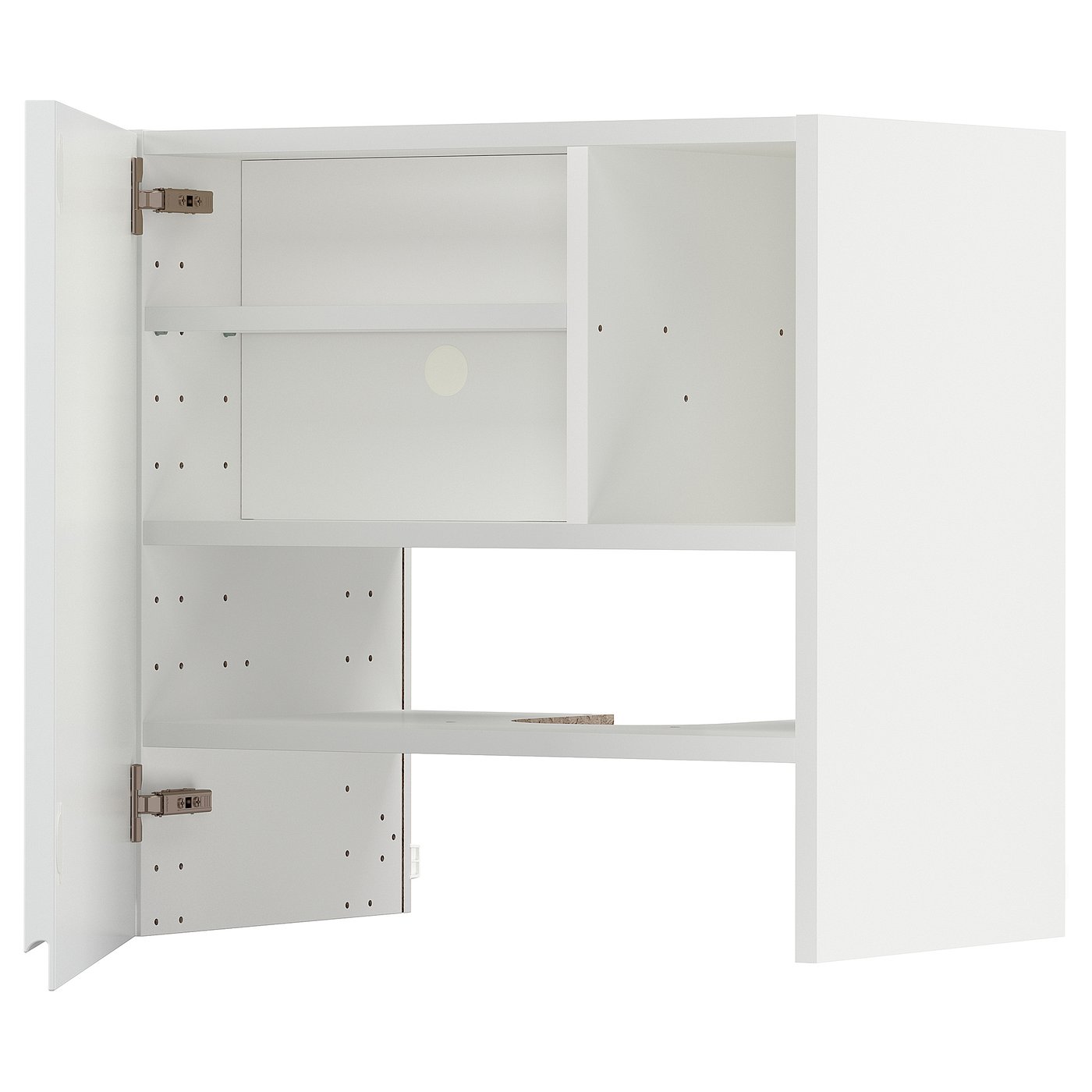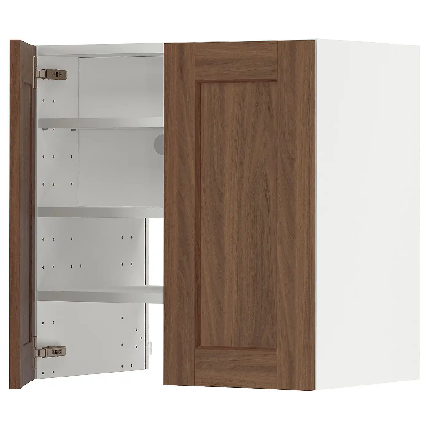 METOD Wall cb f extr hood w shlf/door - white Enköping/brown walnut effect 60x60 cm
