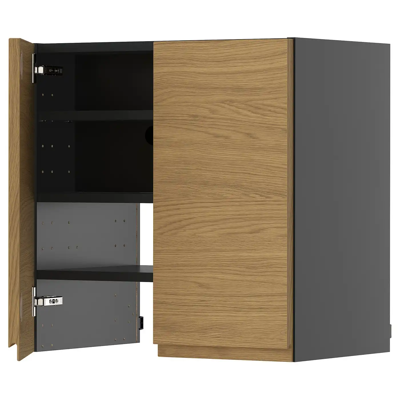 METOD Wall cb f extr hood w shlf/door - black-grey/Voxtorp oak effect 60x60 cm