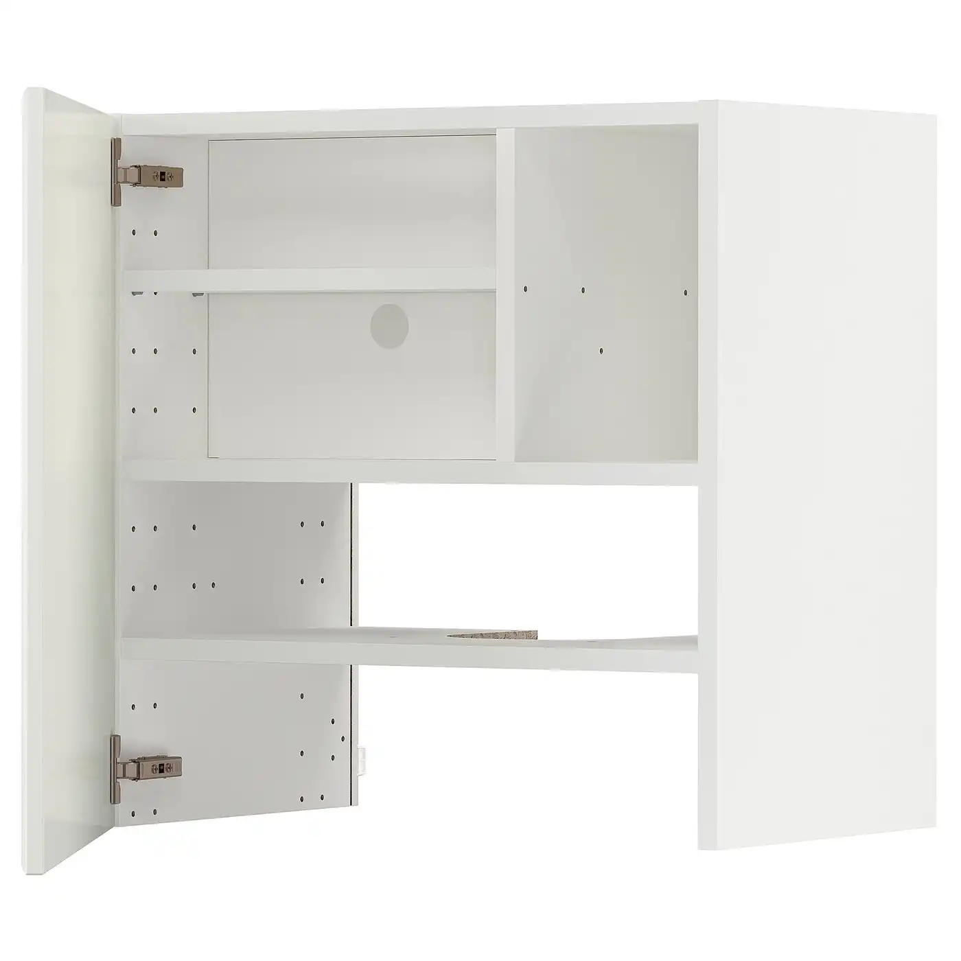 METOD Wall cb f extr hood w shlf/door - white/Voxtorp matt white 60x60 cm