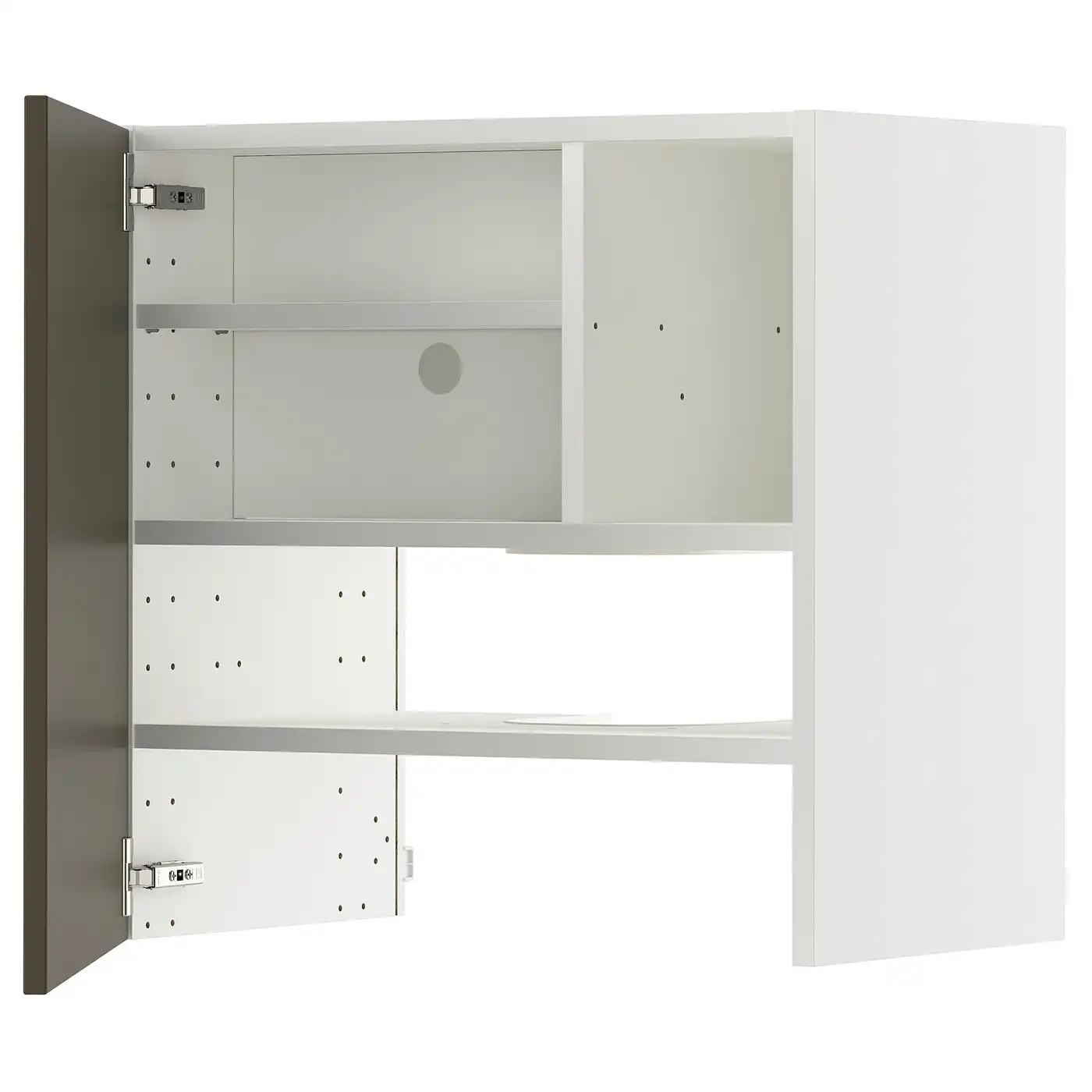 METOD Wall cb f extr hood w shlf/door - white/Upplöv matt dark beige 60x60 cm