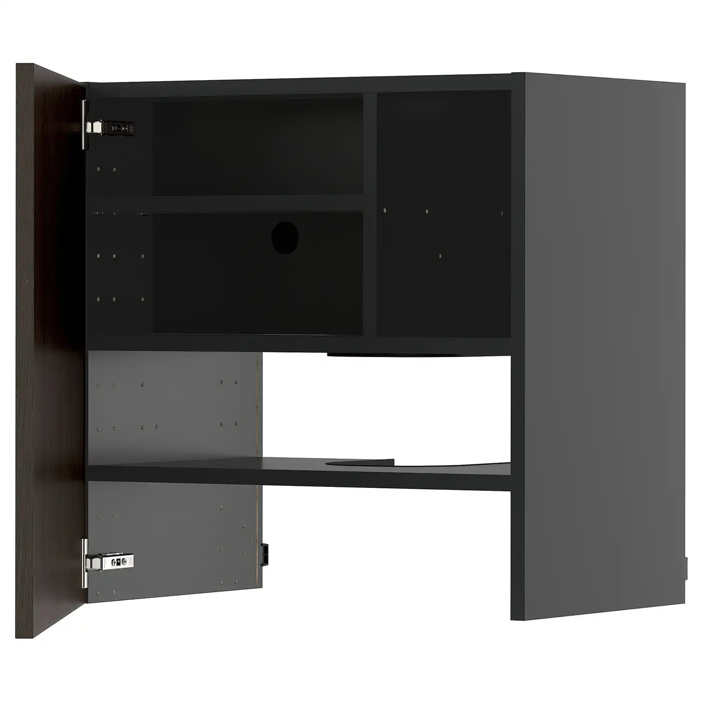 METOD Wall cb f extr hood w shlf/door - black-grey/Sinarp brown 60x60 cm