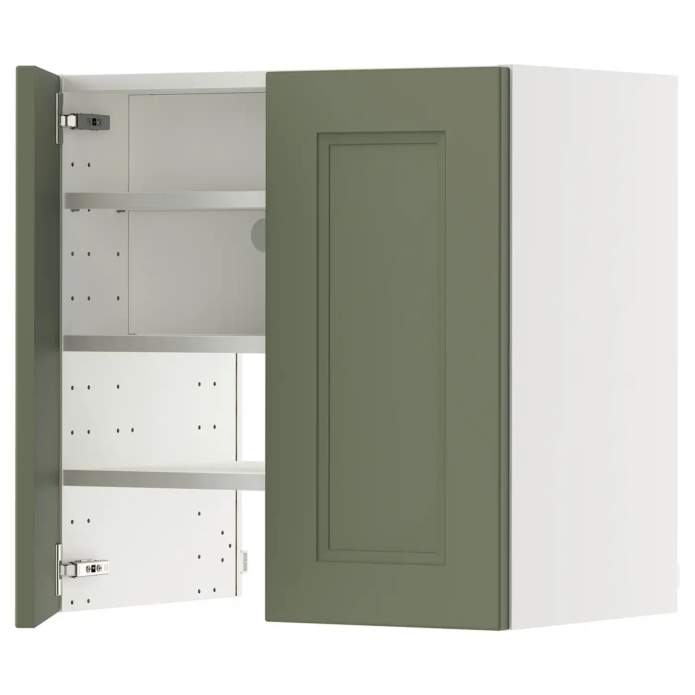 METOD Wall cb f extr hood w shlf/door - white/Axstad grey-green 60x60 cm