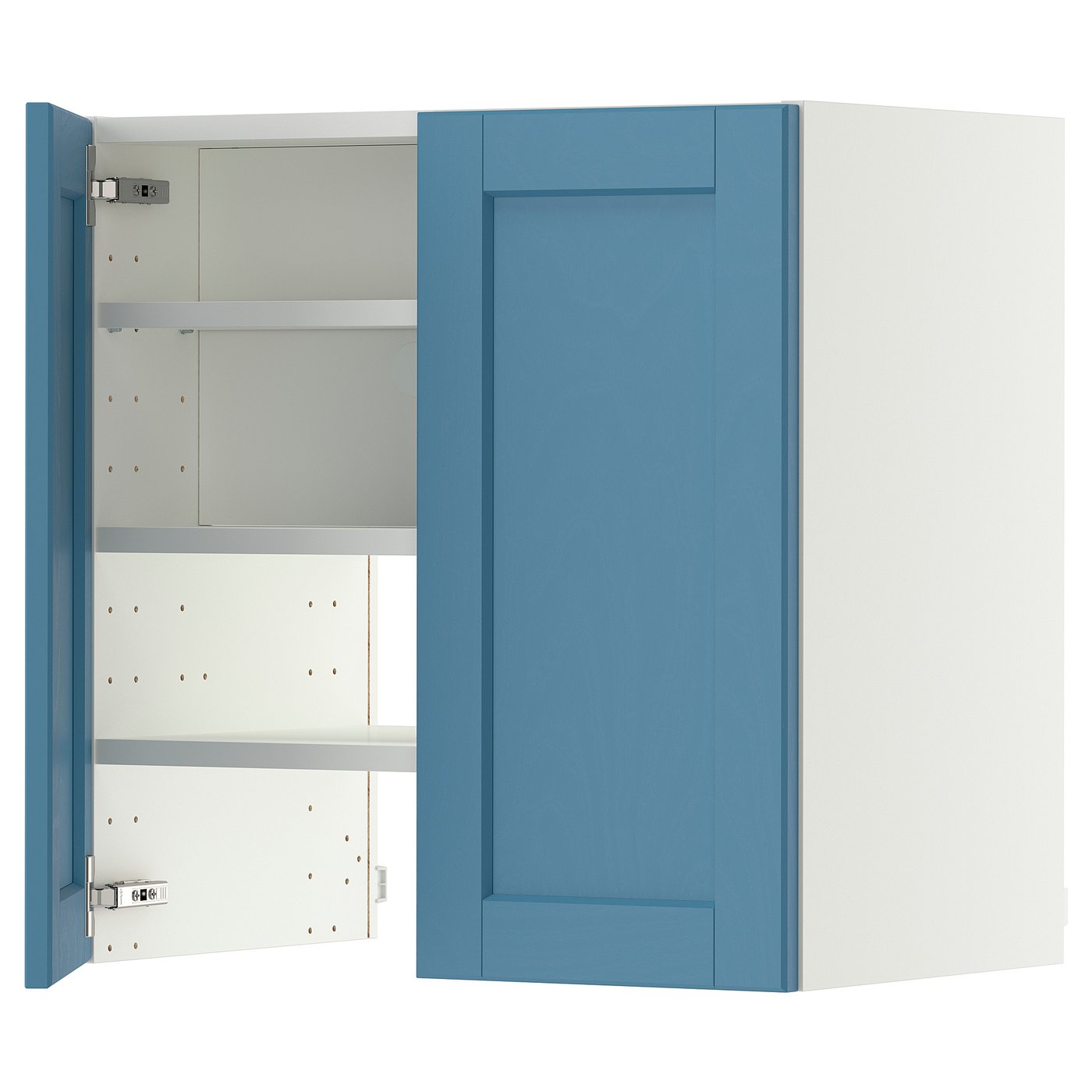 METOD Wall cb f extr hood w shlf/door - white/Lerhyttan blue 60x60 cm