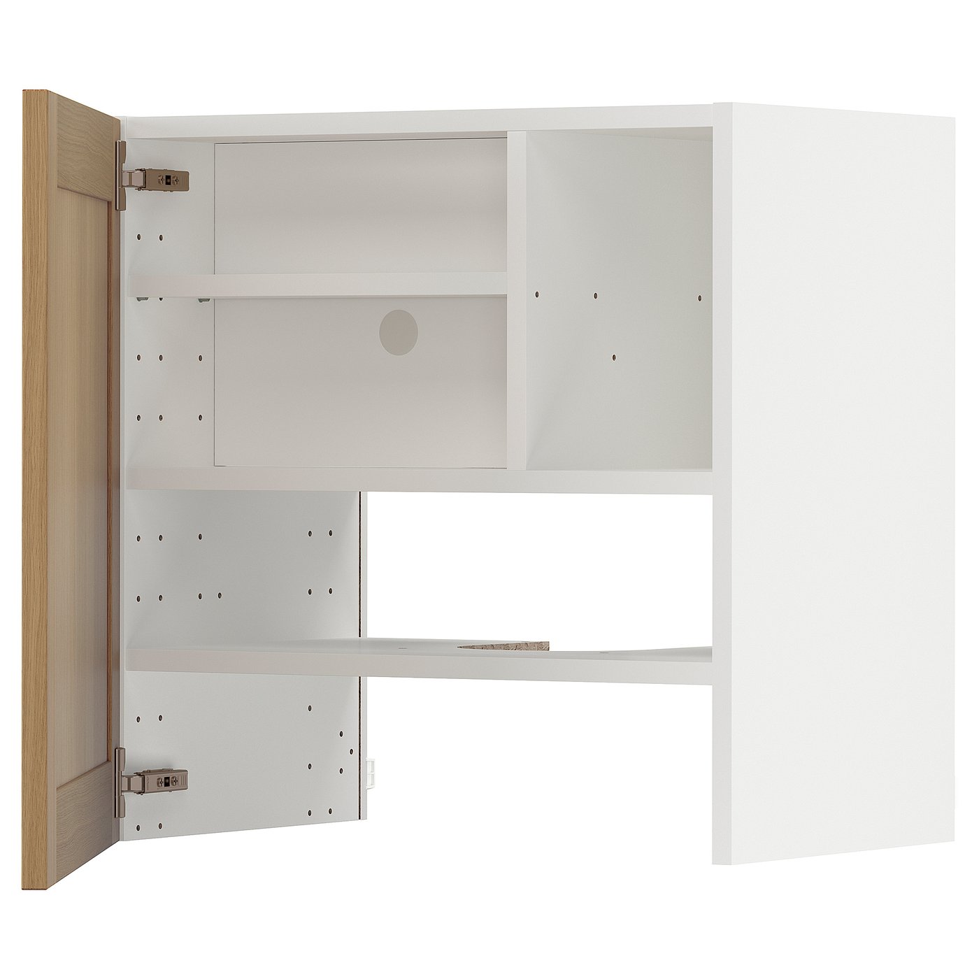 METOD Wall cb f extr hood w shlf/door - white/Vedhamn oak 60x60 cm