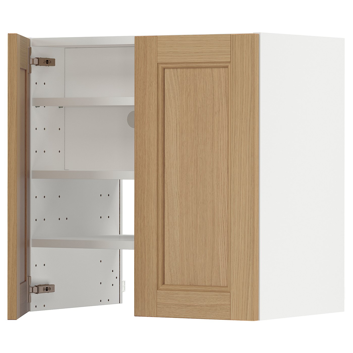 METOD Wall cb f extr hood w shlf/door - white/Voxtorp oak effect 60x60 cm