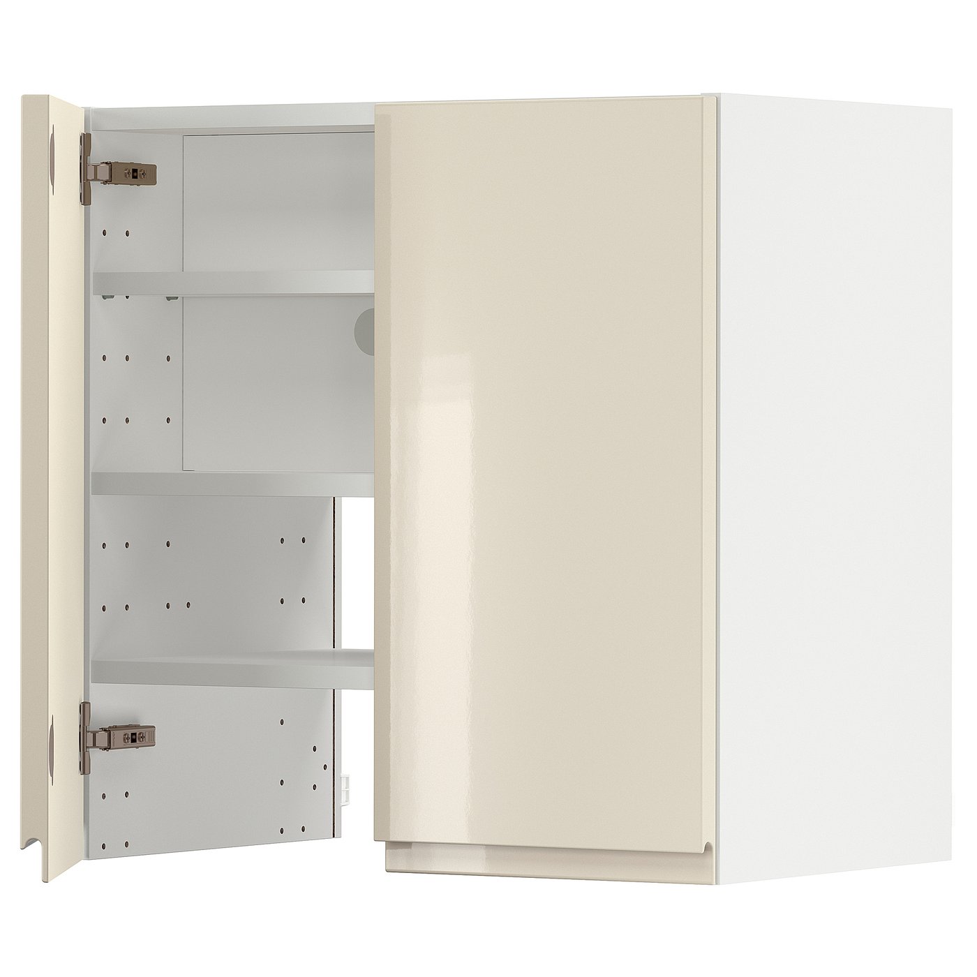 METOD Wall cb f extr hood w shlf/door - white/Voxtorp high-gloss light beige 60x60 cm