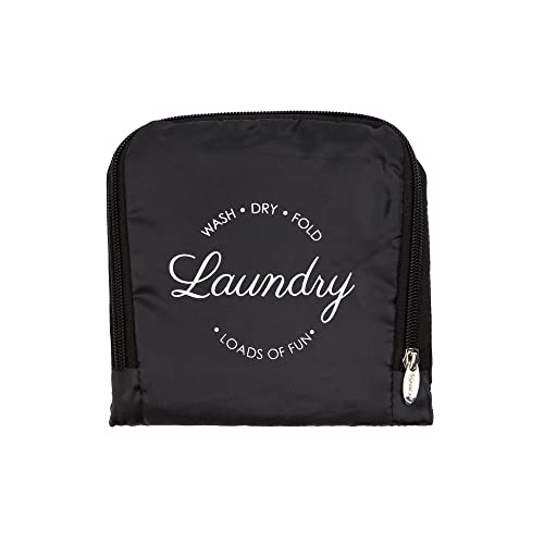 Miamica Women's Foldable Travel Laundry Bag, Black "Wash, Dry, Fold, Loads of Fun", 21” x 22” – Lightweight, Durable Design with Drawstring Closure
