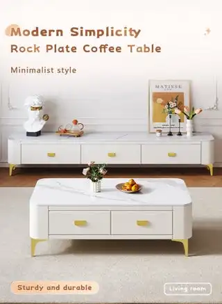 Mid-Century Modern TV Stand Set,Simple Small Family Living Room Modern Square Storage Tea Table,Sturdy Metal Legs,Minimalist Center Tabl, for Living Room,Bedrooms, Study rooms