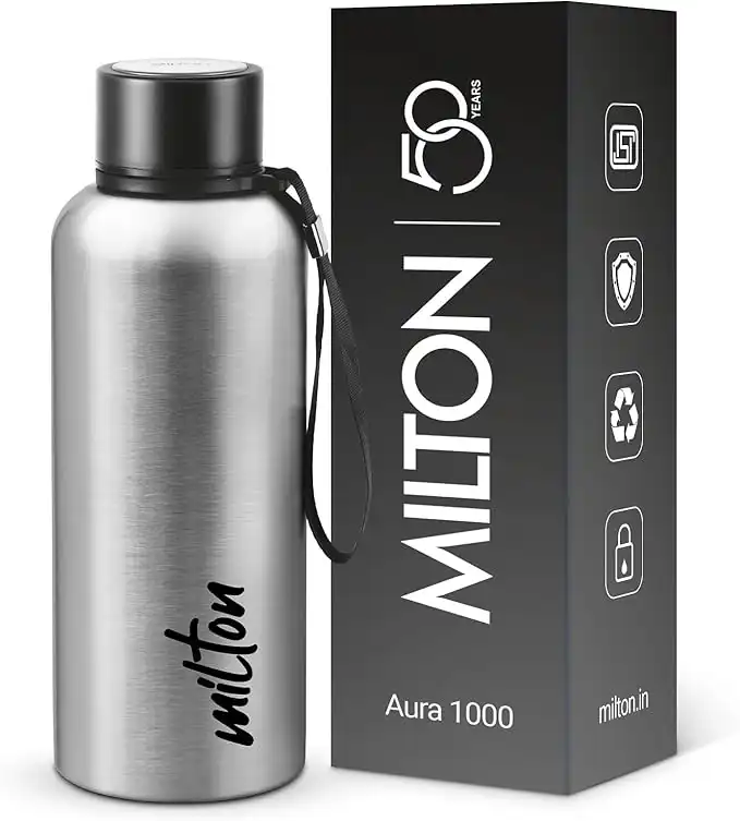 amazon.comMILTON 750ml Vacuum Insulated Water Bottle, Keeps Drinks Hot and Cold for 24 Hours, 18/8 Stainless Steel, Double-Walled Thermos Flask with Inner Copper Coating for Sports, Gym, Office, Aura - Silver