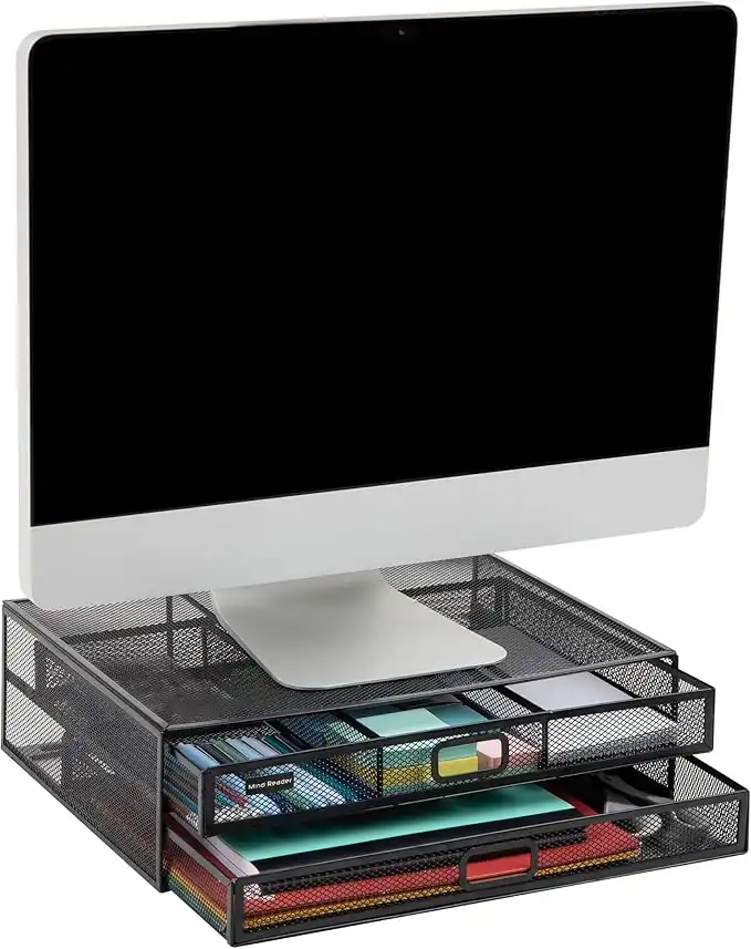 Mind Reader Monitor Stand, Ventilated Laptop Riser, Storage Drawer, Office, Metal Mesh, 15.75"L x 11.75"W x 4.5"H, Black — Price History & Tracker | DeserTracker