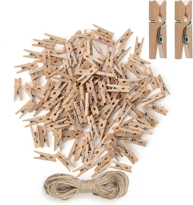 Mini Clothespins, Mini Natural Wooden Clothespins with Jute Twine, Multi-Function Clothespins Photo Paper Peg Pin Craft Clips (Wood) — Price History & Tracker | DeserTracker
