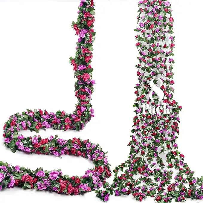 Miracliy 8Pcs 66FT Purple Flower Garland, Artificial Rose Floral Vines Fake Hanging Spring Flower Garland for Wall Backdrop Wedding Arch Tea Party Door Mantle Decoration — Price History & Tracker | DeserTracker