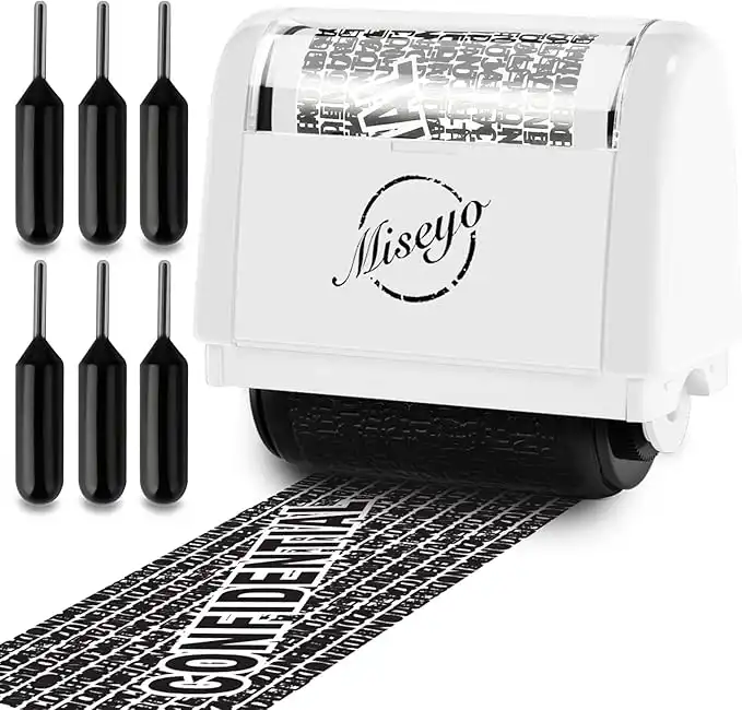 amazon.aeMiseyo Wide Identity Theft Protection Roller Stamp Set - White (3 Refill Ink Included)