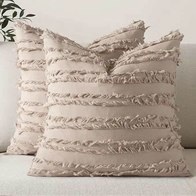 MIULEE Set of 2 Decorative Boho Throw Pillow Covers Linen Striped Jacquard Pattern Cushion Covers for Sofa Couch Living Room Bedroom 18x18 Inch Beige — Price History & Tracker | DeserTracker