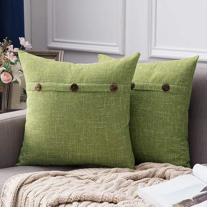 amazon.aeMIULEE Set of 2 Decorative Linen Throw Pillow Covers Cushion Case Triple Button Vintage Farmhouse Spring Pillowcase for Couch Sofa Bed 18 x 18 Inch 45 x 45 cm Green