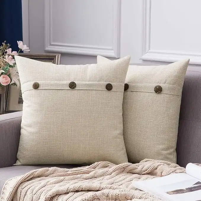 amazon.aeMIULEE Set of 2 Decorative Linen Throw Pillow Covers Cushion Case Triple Button Vintage Farmhouse Pillowcase for Couch Sofa Bed 18 x 18 Inch 45 x 45 cm Beige