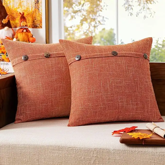 amazon.aeMIULEE Set of 2 Decorative Linen Throw Pillow Covers Cushion Case Triple Button Vintage Farmhouse Pillowcase for Couch Sofa Bed 18 x 18 Inch 45 x 45 cm Fall Orange