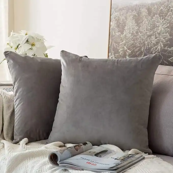 MIULEE Set of 2 Velvet Cushion Covers Decorative Sofa Pillowcase Super Soft Home Living Room Bedroom for Sofa 45 x 45 cm Grey