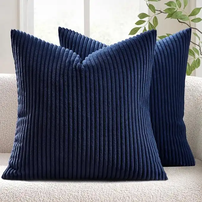 MIULEE Winter Pack of 2 Corduroy Soft Soild Decorative Square Throw Pillow Covers Cushion Cases Pillow Cases for Couch Sofa Bedroom Car 18 x 18 Inch 45 x 45 cm Dark Blue
