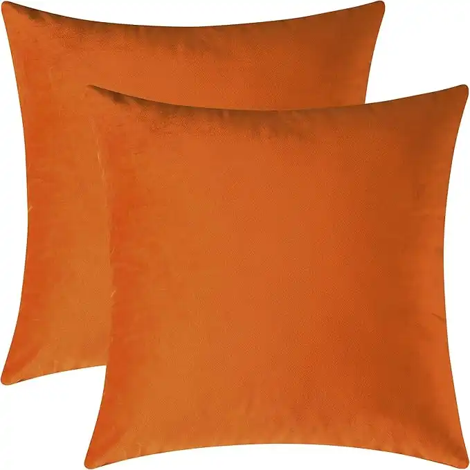 amazon.aeMixhug Decorative Throw Pillow Covers, Velvet Cushion Covers, Solid Throw Pillow Cases for Couch and Bed, Orange, 16 x 16 Inches, Set of 2