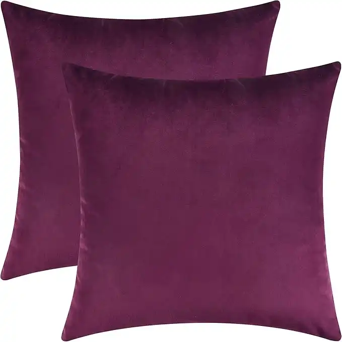 amazon.aeMixhug Decorative Throw Pillow Covers, Velvet Cushion Covers, Solid Throw Pillow Cases for Couch and Bed, Deep Plum, 16 x 16 Inches, Set of 2