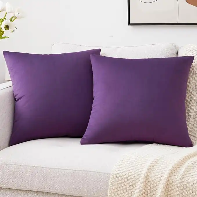 amazon.aeMixhug Decorative Throw Pillow Covers, Velvet Cushion Covers, Solid Throw Pillow Cases for Couch and Bed, Purple, 26 x 26 Inches, Set of 2