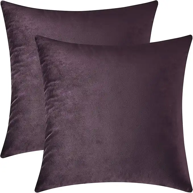 amazon.aeMixhug Set of 2 Cozy Velvet Square Decorative Throw Pillow Covers for Couch and Bed, Deep Plum, 18 x 18 Inches