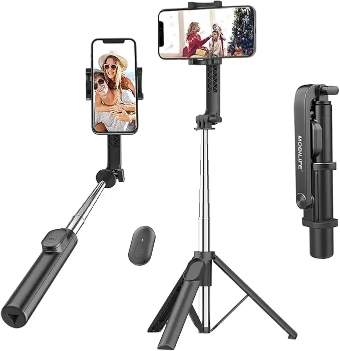 amazon.aeMOBILIFE Make Your Life Better Portable Selfie Stick with Tripod Stand Reinforced 96cm/37.8 inch Long 4 in 1 Bluetooth Selfie Stick Tripod Compact Stable for Mobile Phone Gopro Vlogging Travel