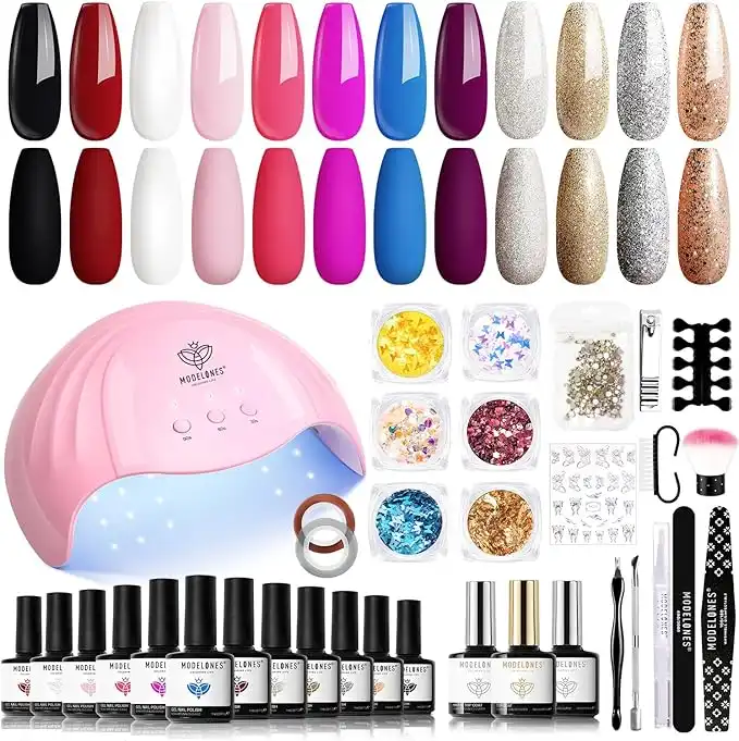 amazon.aemodelones 12 Colors Gel Nail Polish Kit with U V Light 48w LED Nail Dryer Lamp/Gel Base and Top Coat/Nail Art Tools/Glitter Sequins Rhinestones Essential Manicure Kit for Valentine's Day
