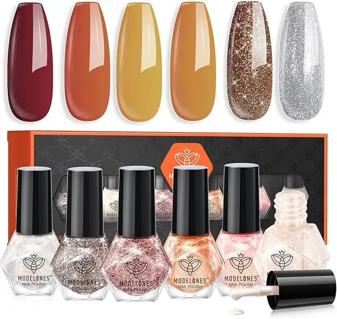 amazon.aeModelones Fall Gel Nail Polish Kit With U V Light - 7 Shades Autumn Yellow Glitter Orange Burgundy Red Gel Manicure Kit Starter Set/Bond Primer/No Wipe Base&Top Coat Gift For Home Nail Curing