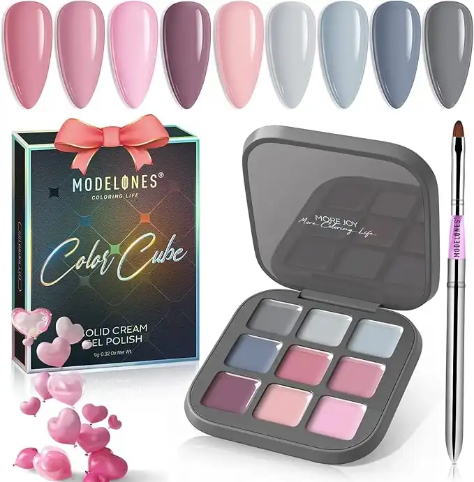amazon.aemodelones Gel Nail Polish Set, 9 Colors Gray Pink Solid Gel Polish Pudding Gel 2023 Upgraded Crème Manicure Palette Soak Off LED Nail Art Kit Salon DIY Home Portable Storable, with Pro Nail Brush